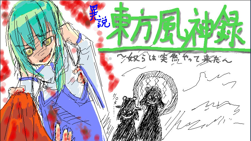 早苗さんと襲われてる霊夢らしき人が僕で右のタイトルと神奈子と諏訪子がヨロズナさん。